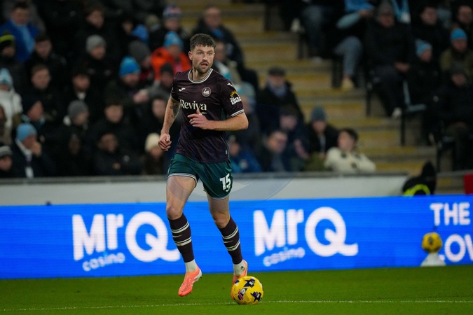 Cameron Burgess, of Swansea City runs with the ball during the Sky Bet Championship match Coventry City vs Swansea City at Coventry Building Society Arena, Coventry, United Kingdom, 26th December 2025, Credit:Maynard Manyowa/News Images / Avalon