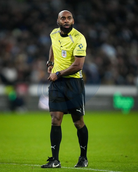Referee Samuel Allison during the Sky Bet Championship match Coventry City vs Swansea City at Coventry Building Society Arena, Coventry, United Kingdom, 26th December 2025, Credit:Maynard Manyowa/News Images / Avalon