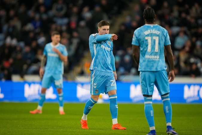 Coventry City substitutes Josh Eccles, of Coventry City and Haji Wright, of Coventry City during the Sky Bet Championship match Coventry City vs Swansea City at Coventry Building Society Arena, Coventry, United Kingdom, 26th December 2025, Credit:Maynard Manyowa/News Images / Avalon