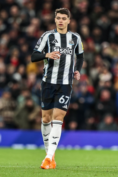 Lewis Miley of Newcastle United during the Premier League match Manchester United vs Newcastle United at Old Trafford, Manchester, United Kingdom, 26th December 2025, Credit:Ae Cosgrove/News Images / Avalon