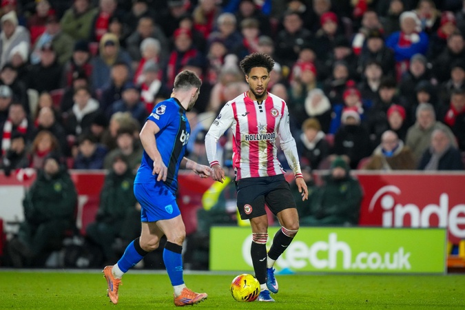 Kevin Schade of Brentford dribbles the ball during the Premier League match Brentford vs Bournemouth at The Gtech Community Stadium, London, United Kingdom, 27th December 2025, Credit:Maynard Manyowa/News Images / Avalon