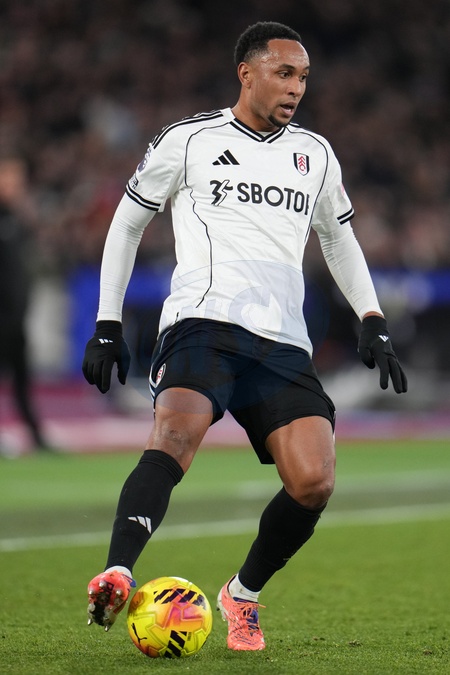 Kenny Tete of Fulham on the ball during the Premier League match West Ham United vs Fulham at London Stadium, London, United Kingdom, 27th December 2025, Credit:Harvey Murphy/News Images / Avalon