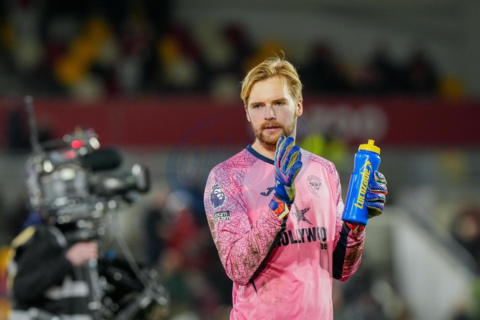Brentford goalkeeper Caoimhin Kelleher applauds the fans after the final whistle during the Premier League match Brentford vs Bournemouth at The Gtech Community Stadium, London, United Kingdom, 27th December 2025, Credit:Maynard Manyowa/News Images / Avalon