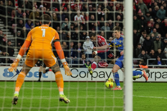 Wilson Isidor of Sunderland shoots on goal during the Premier League match Sunderland vs Leeds United at Stadium Of Light, Sunderland, United Kingdom, 28th December 2025, Credit:Ae Cosgrove/News Images / Avalon