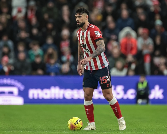 Omar Alderete of Sunderland with the ball during the Premier League match Sunderland vs Leeds United at Stadium Of Light, Sunderland, United Kingdom, 28th December 2025, Credit:Ae Cosgrove/News Images / Avalon