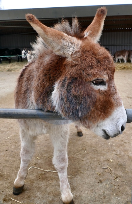 Donkeys out in their paddocks on a cold, grey day in the countryside. Island Farm Donkey Sanctuary is a registered charity that cares for ill-treated and neglected donkeys and other animals. They currently have over 100 donkeys that we they for passionately.The first donkeys arrived in the late Eighties and this initial rescue work was privately funded In 1997 the Sanctuary became affiliated to a charity allowing the rescue work to continue while fund raising and promotion could began in earnest with appearances at country shows, steam rallies and village fetes. This initial period was invaluable because it gave the chance to prove that the Sanctuary could be run as a business while maintaining the important care and attention to every individual donkey. All this effort paid off, when in July 2000 the Sanctuary was registered with the Charity Commission and from then became known as Island Farm Donkey Sanctuary., Credit:Geoffrey Swaine / Avalon