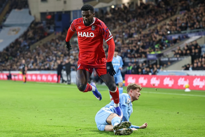 Cedric Kipre of Ipswich Town gets tackled during the Sky Bet Championship match Coventry City vs Ipswich Town at Coventry Building Society Arena, Coventry, United Kingdom, 29th December 2025, Credit:Euan Manning/News Images / Avalon