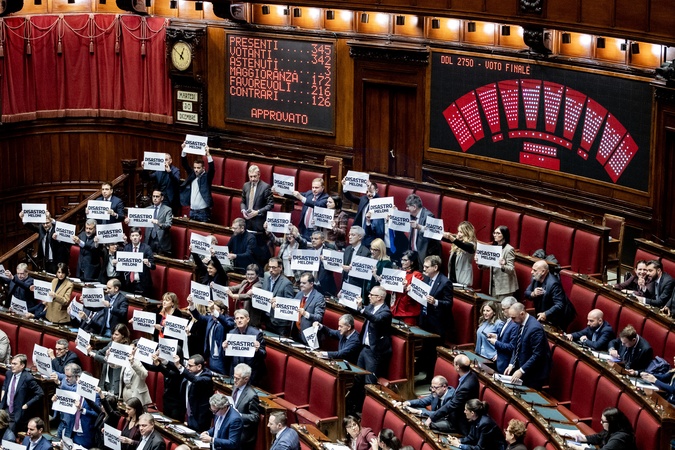 Chamber, Final vote on the Budget bill. Pictured is the opposition protest after the vote. Rome, Italy 30 December 2025, Credit:Francesco Fotia / Avalon