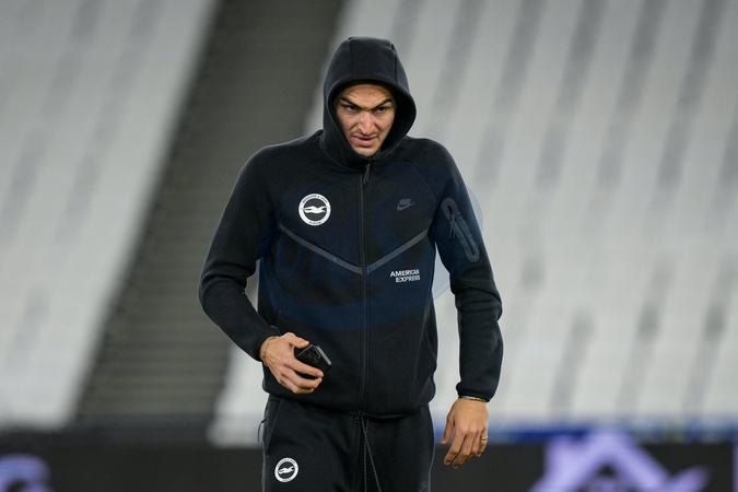 Diego Coppola of Brighton & Hove Albion inspects the pitch prior to kick off during the Premier League match West Ham United vs Brighton and Hove Albion at London Stadium, London, United Kingdom, 30th December 2025, Credit:Maynard Manyowa/News Images / Avalon