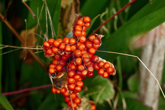 Bright orange stinking iris berries on a wintery afternoon in the countryside., Credit:Geoffrey Swaine / Avalon