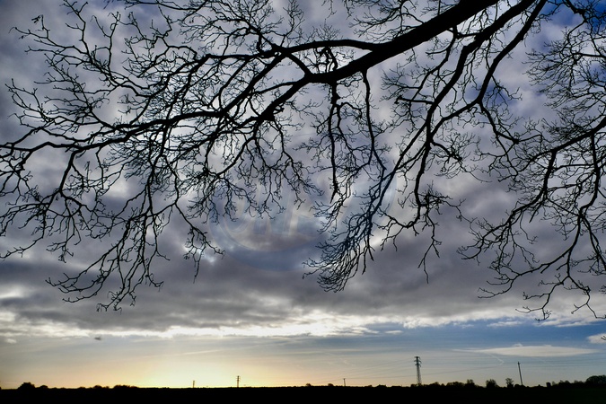 Dramatic cloud formations as the sun attempts to burn through on a cold afternoon in the countryside., Credit:Geoffrey Swaine / Avalon