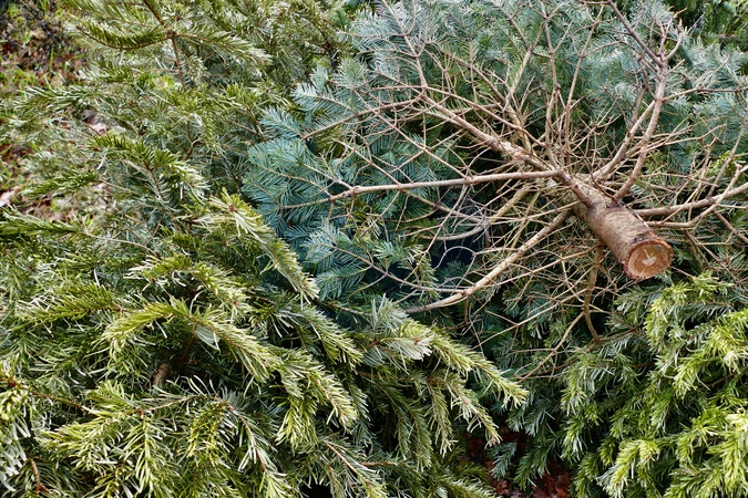 Dumped Christmas trees by the side of the road after Christmas., Credit:Geoffrey Swaine / Avalon