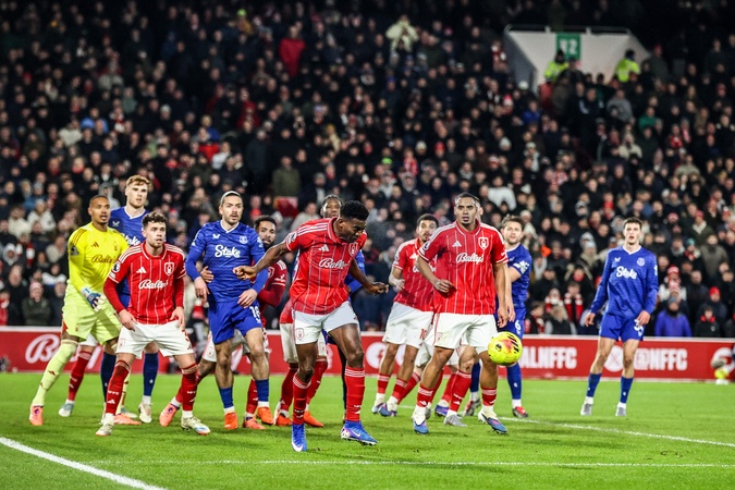 Taiwo Awoniyi of Nottingham Forest heads clear from a corner during the Premier League match Nottingham Forest vs Everton at City Ground, Nottingham, United Kingdom, 30th December 2025, Credit:Ae Cosgrove/News Images / Avalon
