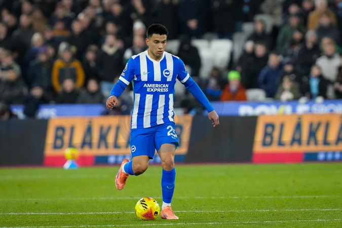 Diego Gómez of Brighton & Hove Albion makes a run with the ball during the Premier League match West Ham United vs Brighton and Hove Albion at London Stadium, London, United Kingdom, 30th December 2025, Credit:Maynard Manyowa/News Images / Avalon