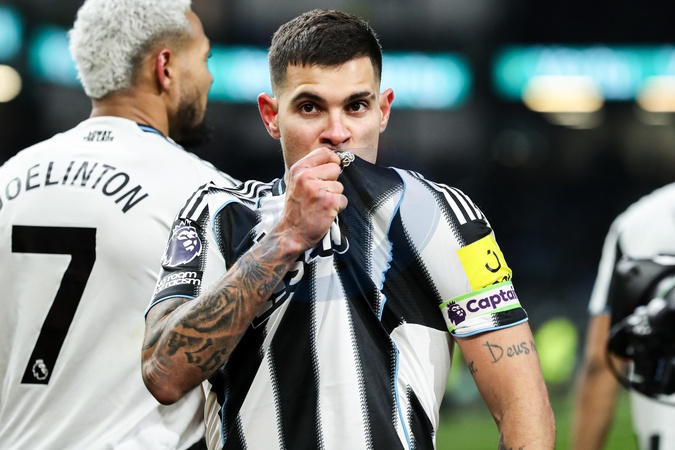 Bruno Guimaraes of Newcastle United scores and celebrates to make it 1-3 during the Premier League match Burnley vs Newcastle United at Turf Moor, Burnley, United Kingdom, 30th December 2025, Credit:Jorge Horsted/News Images / Avalon