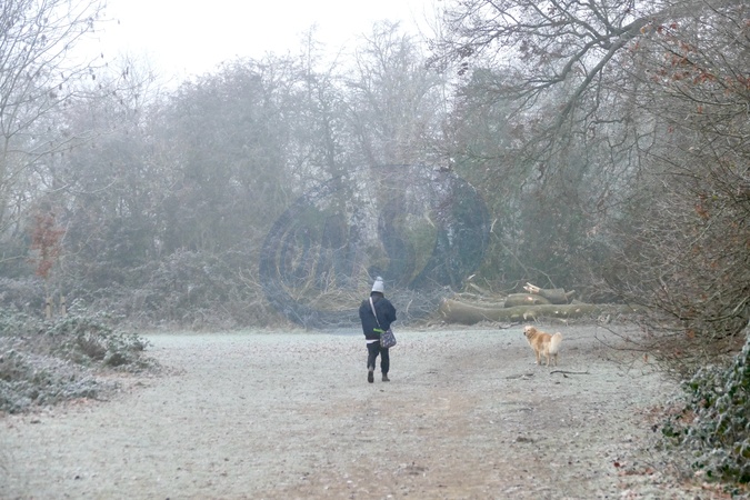 Walkers out on a cold, frosty and foggy morning in the countryside., Credit:Geoffrey Swaine / Avalon