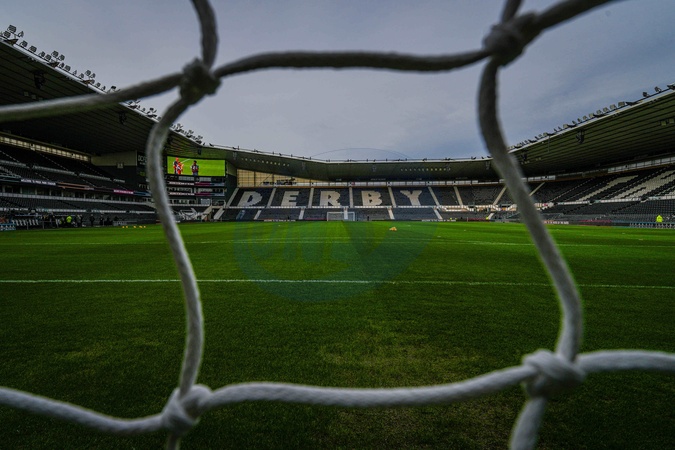 A ground shot showing the pitch during the Sky Bet Championship match Derby County vs Middlesbrough at Pride Park Stadium, Derby, United Kingdom, 1st January 2026, Credit:Maynard Manyowa/News Images / Avalon
