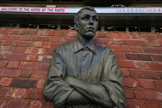 A statue of Steve Bloomer during the Sky Bet Championship match Derby County vs Middlesbrough at Pride Park Stadium, Derby, United Kingdom, 1st January 2026, Credit:Maynard Manyowa/News Images / Avalon