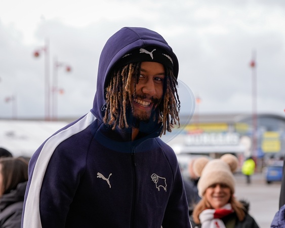 Dion Sanderson of Derby County arrives at the stadium prior to kick off during the Sky Bet Championship match Derby County vs Middlesbrough at Pride Park Stadium, Derby, United Kingdom, 1st January 2026, Credit:Maynard Manyowa/News Images / Avalon