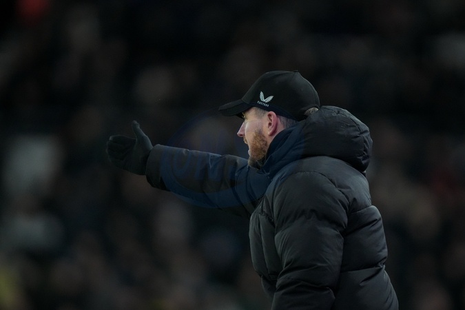 Kim Hellberg manager of Middlesbrough gives his team instructions during the Sky Bet Championship match Derby County vs Middlesbrough at Pride Park Stadium, Derby, United Kingdom, 1st January 2026, Credit:Maynard Manyowa/News Images / Avalon