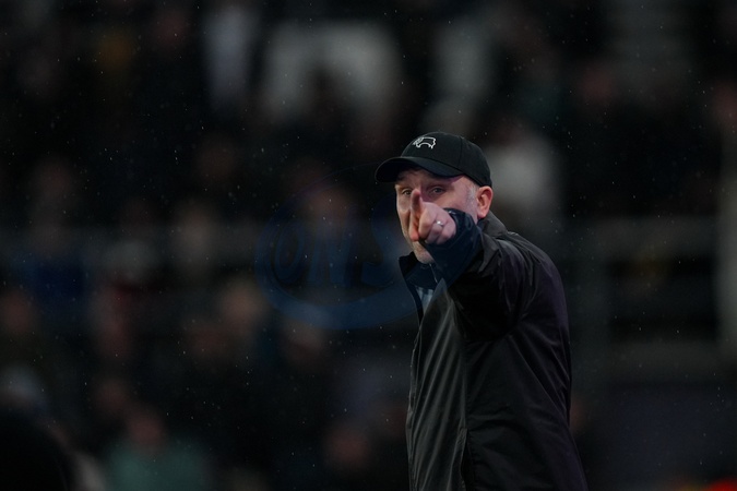 John Eustace manager of Derby County gives his team instructions during the Sky Bet Championship match Derby County vs Middlesbrough at Pride Park Stadium, Derby, United Kingdom, 1st January 2026, Credit:Maynard Manyowa/News Images / Avalon