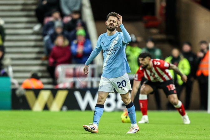 Bernardo Silva of Manchester City reacts during the Premier League match Sunderland vs Manchester City at Stadium Of Light, Sunderland, United Kingdom, 1st January 2026, Credit:Ae Cosgrove/News Images / Avalon