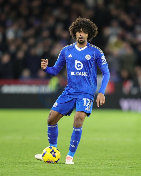 Hamza Choudhury of Leicester City passes the ball during the Sky Bet Championship match Sheffield United vs Leicester City at Bramall Lane, Sheffield, United Kingdom, 1st January 2026, Credit:Richard Bierton/News Images / Avalon