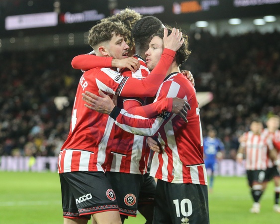 Callum O'Hare of Sheffield United celebrates his goal to make it 3-0 during the Sky Bet Championship match Sheffield United vs Leicester City at Bramall Lane, Sheffield, United Kingdom, 1st January 2026, Credit:Richard Bierton/News Images / Avalon