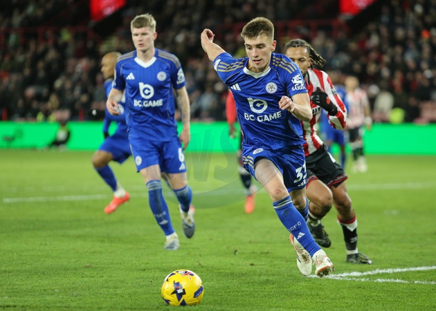 Luke Thomas of Leicester City in action during the Sky Bet Championship match Sheffield United vs Leicester City at Bramall Lane, Sheffield, United Kingdom, 1st January 2026, Credit:Richard Bierton/News Images / Avalon