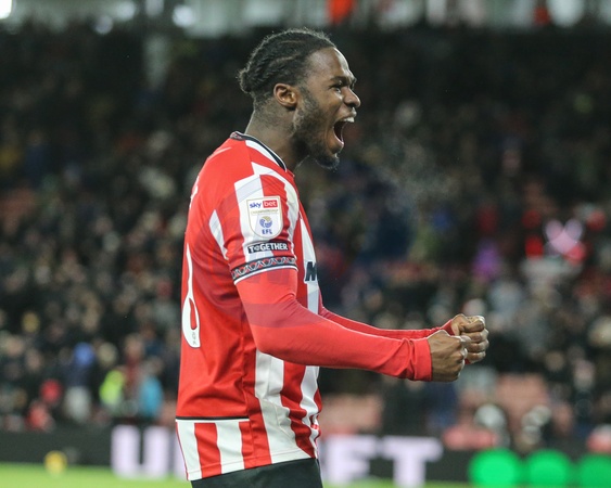 Femi Seriki of Sheffield United celebrates during the Sky Bet Championship match Sheffield United vs Leicester City at Bramall Lane, Sheffield, United Kingdom, 1st January 2026, Credit:Richard Bierton/News Images / Avalon