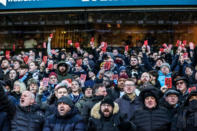 West Ham fans protest during the Premier League match Wolverhampton Wanderers vs West Ham United at Molineux, Wolverhampton, United Kingdom, 3rd January 2026, Credit:Ae Cosgrove/News Images / Avalon