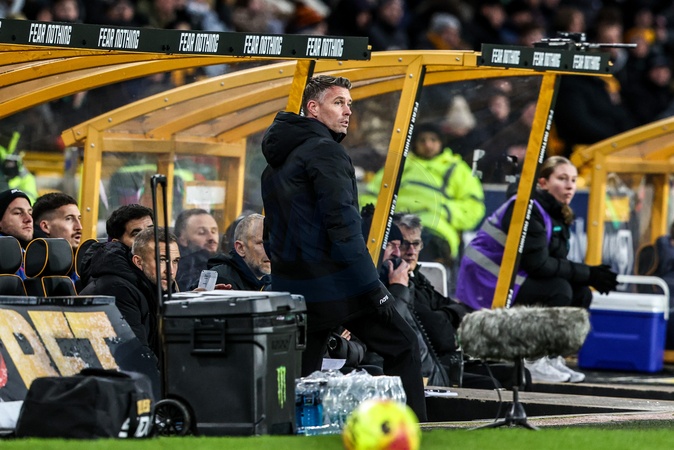 Rob Edwards manager of Wolverhampton Wanderers watches the game from the dugout during the Premier League match Wolverhampton Wanderers vs West Ham United at Molineux, Wolverhampton, United Kingdom, 3rd January 2026, Credit:Ae Cosgrove/News Images / Avalon