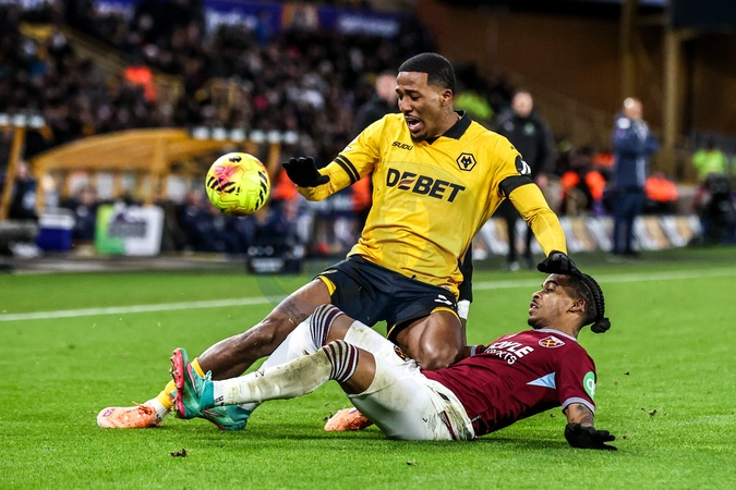 Jackson Tchatchoua of Wolverhampton Wanderers is tackled by Crysencio Summerville of West Ham United during the Premier League match Wolverhampton Wanderers vs West Ham United at Molineux, Wolverhampton, United Kingdom, 3rd January 2026, Credit:Ae Cosgrove/News Images / Avalon