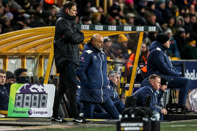 A dejected Nuno Espirito Santo manager of West Ham United looks on as his team trail by 3 goals during the Premier League match Wolverhampton Wanderers vs West Ham United at Molineux, Wolverhampton, United Kingdom, 3rd January 2026, Credit:Ae Cosgrove/News Images / Avalon
