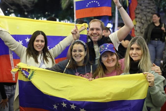Venezuelan and Cuban citizens spontaneously celebrates the capture and end of Nicolás Maduro's presidency by U.S. special forces.Plaza de España, Las Palmas de Gran Canaria, Gran Canaria Island, Spain., Credit:PhotoBilbao/Juan Lazkano / Avalon