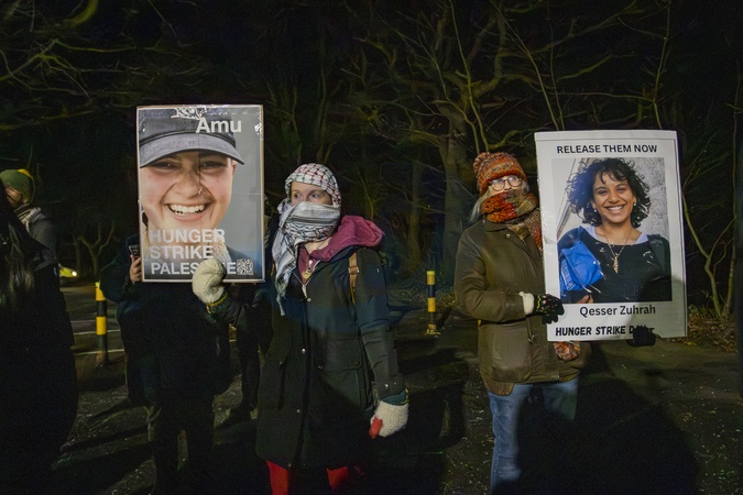 A protest was held outside HMP New Hall in Wakefield in support of Heba, a prisoner reportedly part of the "Filton 24” group, who is currently on hunger strike. Demonstrators gathered to highlight concerns about her treatment and conditions, calling for urgent attention to her case and demanding that the prison authorities address her welfare., Credit:Zak Irfan / Avalon