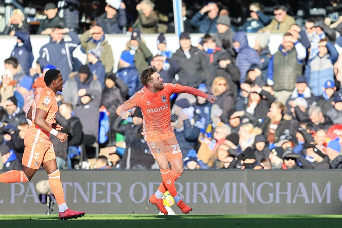 Josh Eccles of Coventry City scores to make it 1-1 during the Sky Bet Championship match Birmingham City vs Coventry City at St. Andrew's @ Knighthead Park, Birmingham, United Kingdom, 4th January 2026, Credit:Euan Manning/News Images / Avalon
