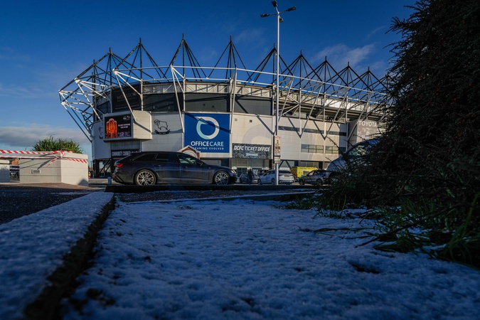 A ground shot showing the frost and frozen ground during the Sky Bet Championship match Derby County vs Wrexham at Pride Park Stadium, Derby, United Kingdom, 4th January 2026, Credit:Maynard Manyowa/News Images / Avalon