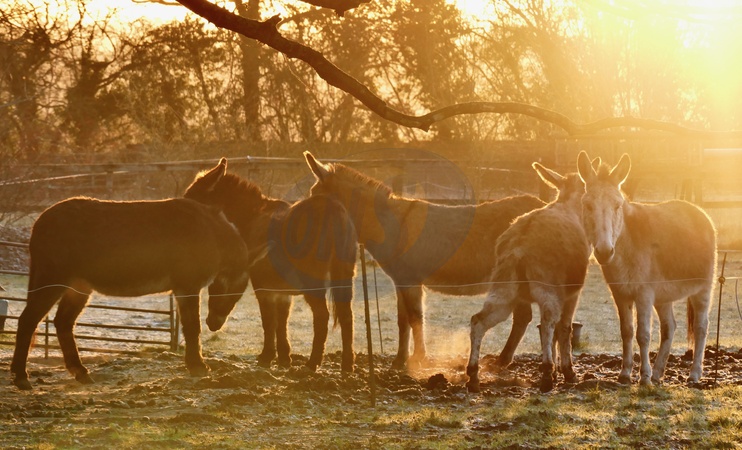 Donkeys on a freezing morning at sunrise., Credit:Geoffrey Swaine / Avalon
