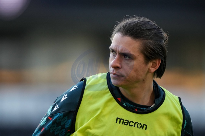 George Dobson of Wrexham in the pregame warmup session during the Sky Bet Championship match Derby County vs Wrexham at Pride Park Stadium, Derby, United Kingdom, 4th January 2026, Credit:Maynard Manyowa/News Images / Avalon