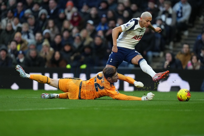 Richarlison of Tottenham Hotspur attempt on goal is saved by Robin Roefs of Sunderland during the Premier League match Tottenham Hotspur vs Sunderland at Tottenham Hotspur Stadium, London, United Kingdom, 4th January 2026, Credit:Harvey Murphy/News Images / Avalon