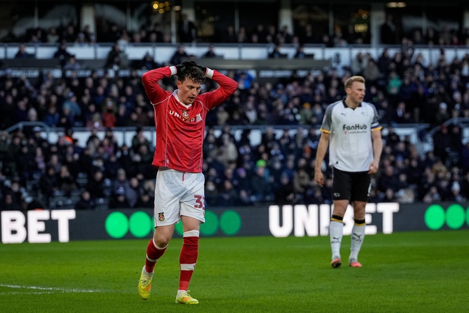 Nathan Broadhead of Wrexham reacts after a missed chance on goal during the Sky Bet Championship match Derby County vs Wrexham at Pride Park Stadium, Derby, United Kingdom, 4th January 2026, Credit:Maynard Manyowa/News Images / Avalon