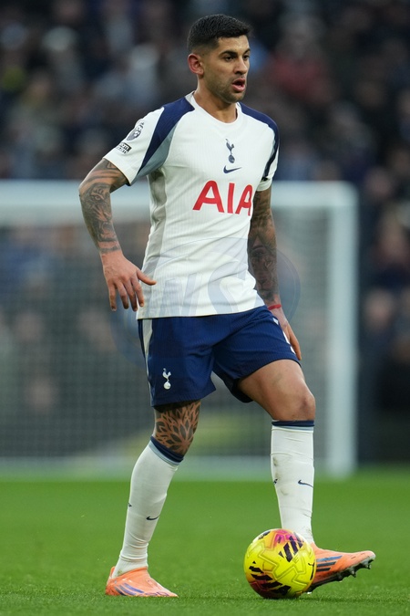 Cristian Romero of Tottenham Hotspur on the ball during the Premier League match Tottenham Hotspur vs Sunderland at Tottenham Hotspur Stadium, London, United Kingdom, 4th January 2026, Credit:Harvey Murphy/News Images / Avalon