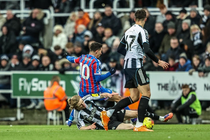 Yeremi Pino of Crystal Palace is fouled by Anthony Gordon of Newcastle United during the Premier League match Newcastle United vs Crystal Palace at St. James's Park, Newcastle, United Kingdom, 4th January 2026, Credit:Ae Cosgrove/News Images / Avalon