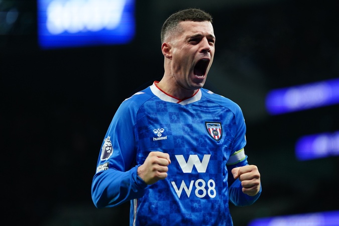 Granit Xhaka of Sunderland celebrates 1-1 equaliser with away support during the Premier League match Tottenham Hotspur vs Sunderland at Tottenham Hotspur Stadium, London, United Kingdom, 4th January 2026, Credit:Harvey Murphy/News Images / Avalon