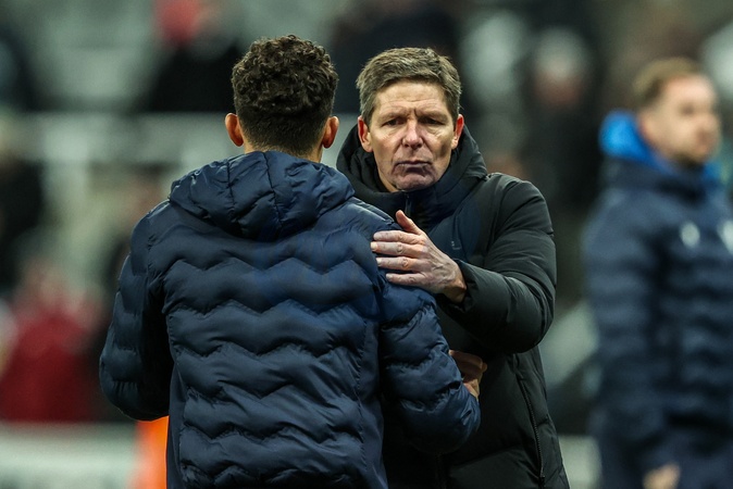 Oliver Glasner manager of Crystal Palace shakes hands with Brennan Johnson of Crystal Palace after the game during the Premier League match Newcastle United vs Crystal Palace at St. James's Park, Newcastle, United Kingdom, 4th January 2026, Credit:Ae Cosgrove/News Images / Avalon