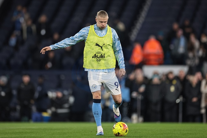 Erling Haaland of Manchester City in the pregame warmup session during the Premier League match Manchester City vs Chelsea at Etihad Stadium, Manchester, United Kingdom, 4th January 2026, Credit:Mark Cosgrove/News Images / Avalon