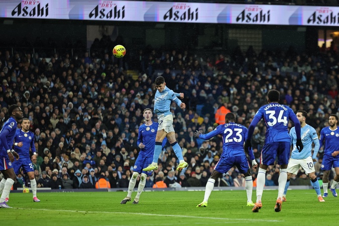 Phil Foden of Manchester City heads on goal during the Premier League match Manchester City vs Chelsea at Etihad Stadium, Manchester, United Kingdom, 4th January 2026, Credit:Mark Cosgrove/News Images / Avalon