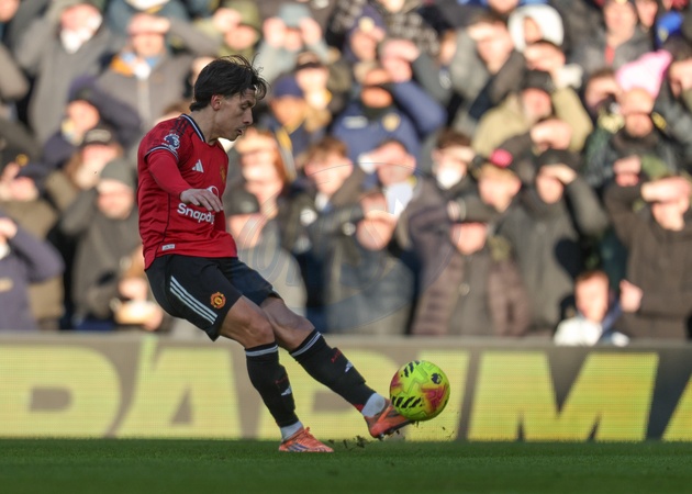 Lisandro Martinez of Manchester United passes the ball during the Premier League match Leeds United vs Manchester United at Elland Road, Leeds, United Kingdom, 4th January 2026, Credit:Richard Bierton/News Images / Avalon
