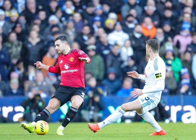 Diogo Dalot of Manchester United passes the ball during the Premier League match Leeds United vs Manchester United at Elland Road, Leeds, United Kingdom, 4th January 2026, Credit:Richard Bierton/News Images / Avalon
